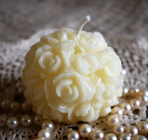 Beeswax Candle Hand Sculpted Rose Ball Sphere Candle in WHITE Beeswax