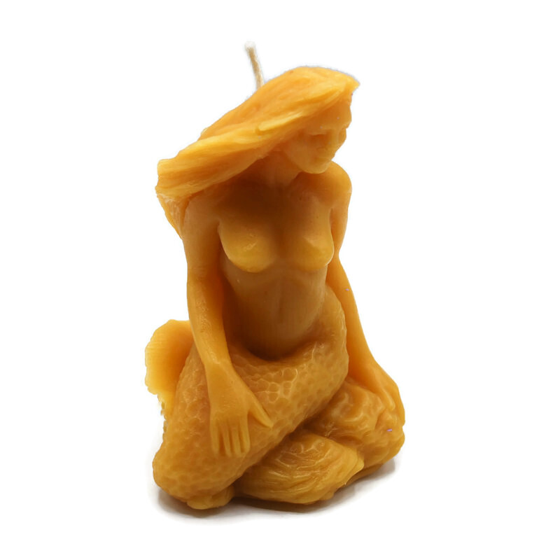 Cute little mermaid with a sweet face, long hair tumbling down her back and of course, a fish fin instead of legs. Measures 5″ tall and 3″ wide at the widest point. What a great gift for the sea lover or beach dweller in your life! Burn time: about 20 hours. As with any candle that is irr