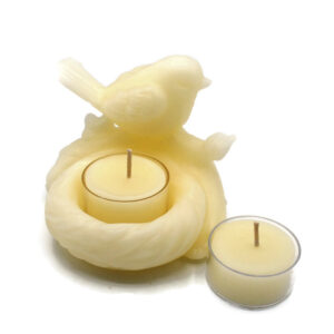 Beeswax Candle Tea Light Holder Bird in Nest Shape in WHITE