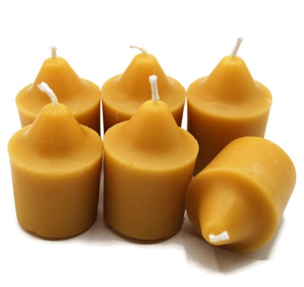These are bigger than our small votives, measuring 1 1/2″ in diameter and 2 1/2 tall. They are sold as a set of 6. Remember votives must be burned in a dish or proper holder as they are designed to melt in their container as they burn. Use them all over the house!