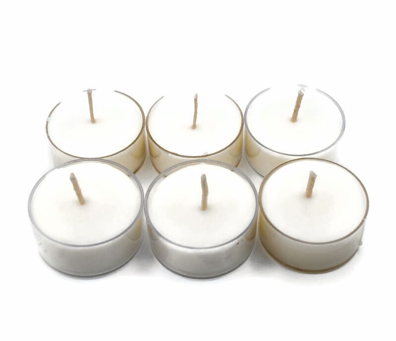 My tealights are the highest quality! Most pre-purchased tealight wick assemblies are made with paper or zinc cores so the wicks will stand up. I never use these! I use only pure cotton wicks. I pre-dip the wick in beeswax first for rigidity and make the tab assembly by hand.