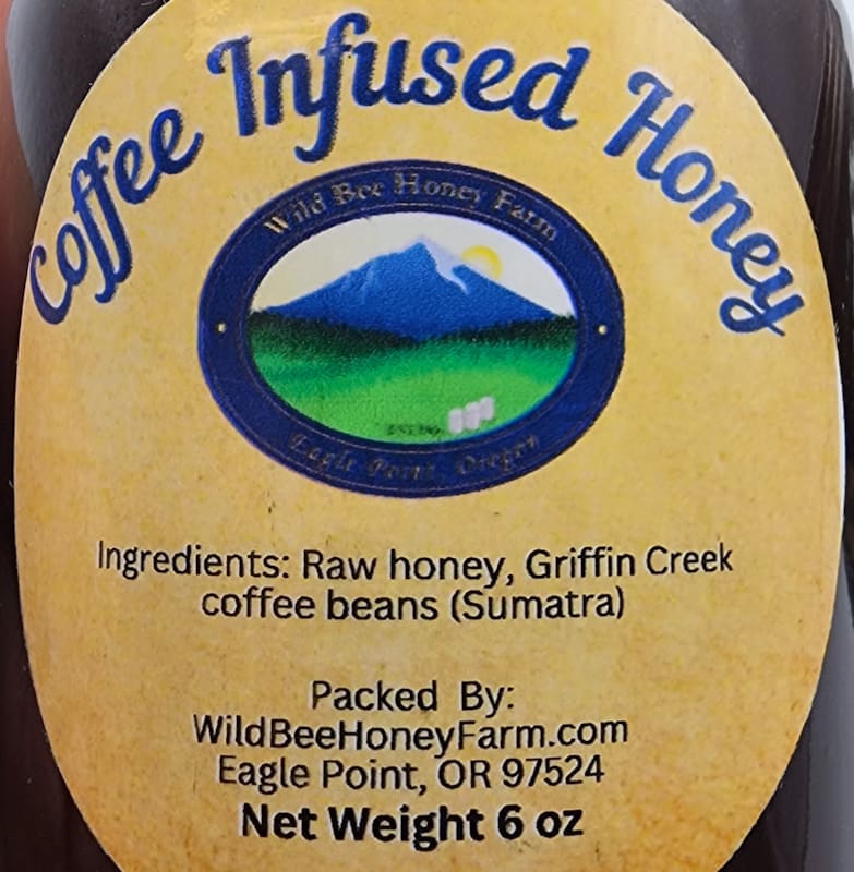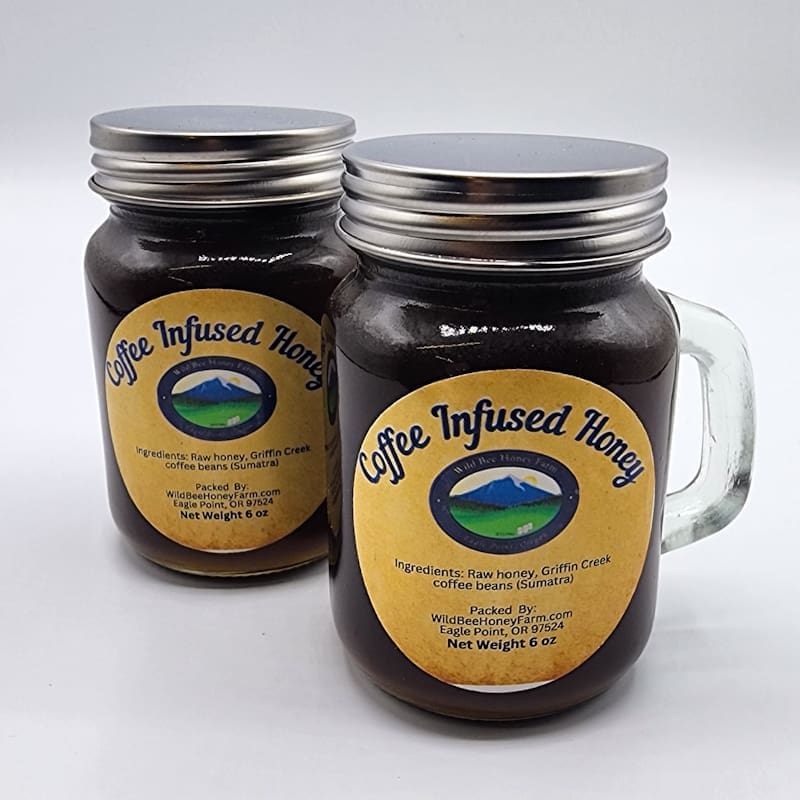 This is our delicious raw honey infused with locally-roasted coffee beans. Rich and delicious! Use to boost up insipid coffee or cocoa, or try as a drizzle on ice cream. Fantastic!