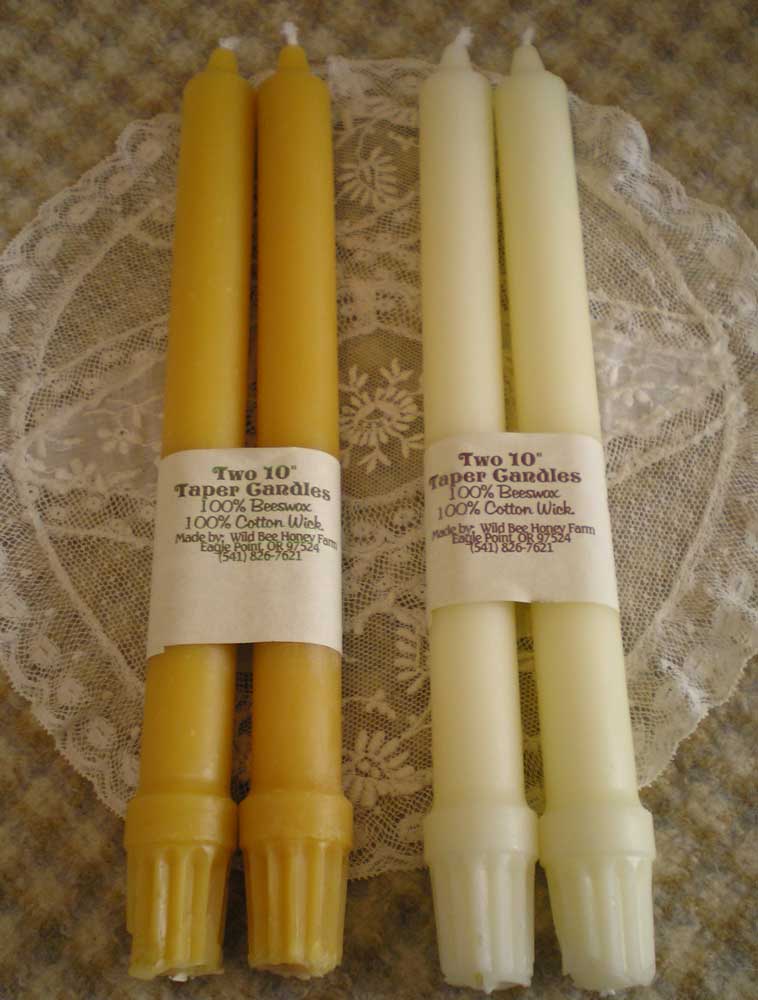 This pair of lovely Colonial-style tapers are available in natural or white pure beeswax. Sized to fit a standard candle holder, they make a beautiful and elegant table centerpiece, or can be used all over the house. These are a little thicker at the top than our standard tapers; therefore the burn time is about 2 hours longer. Total burn time: 12 hours each. Virtually dripless.