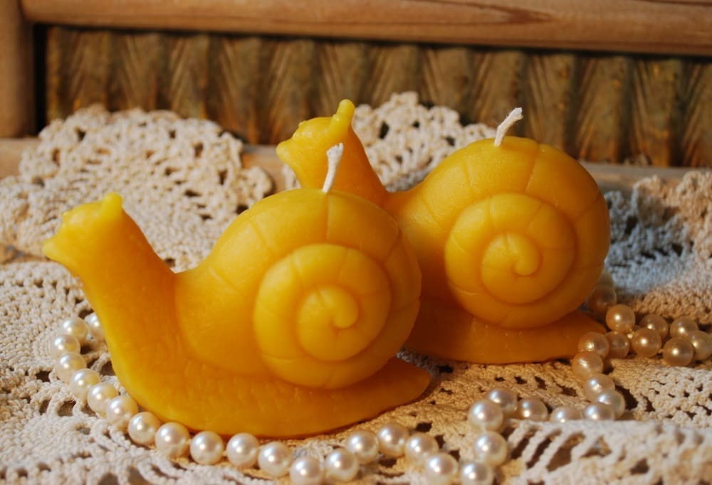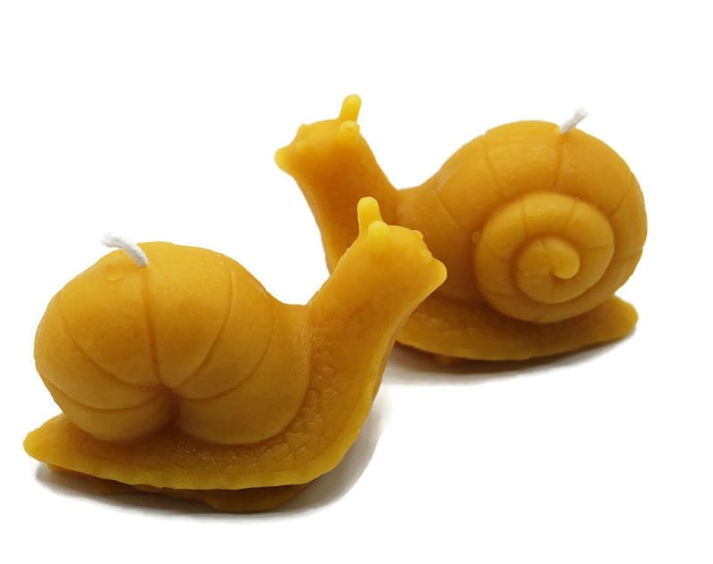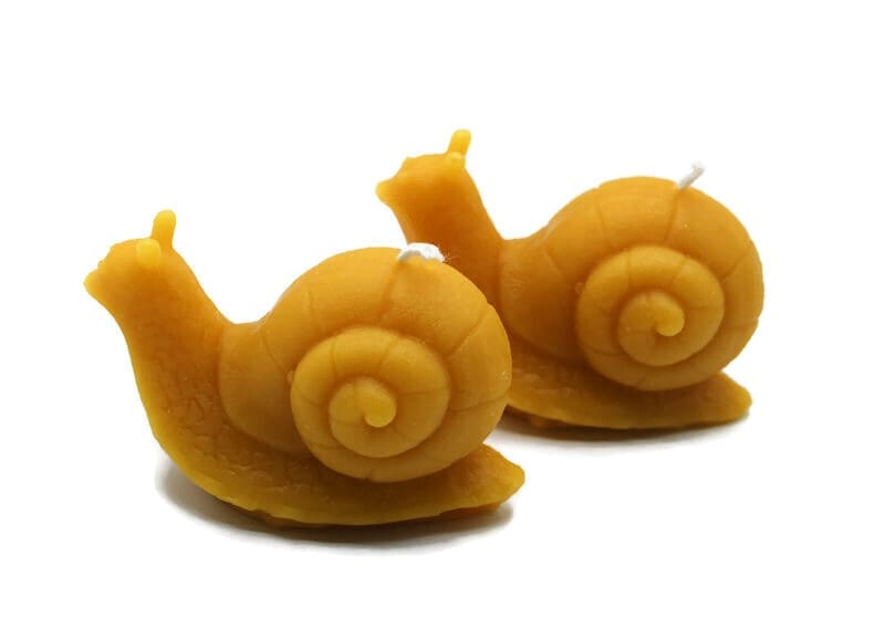 Now if you’re like me and love escargots, here’s a pair for you in candle form. These little guys (actually snails are hermaphroditic, so they’re not boy/girl, but I digress) measures approximately 3 inches long by 1 inch wide and 2 inches tall at the shell. These are small and therefore you’ll get about 2-3 hours of burn time out of each but that’s enough for storytime, celebration, garden club meeting, or…