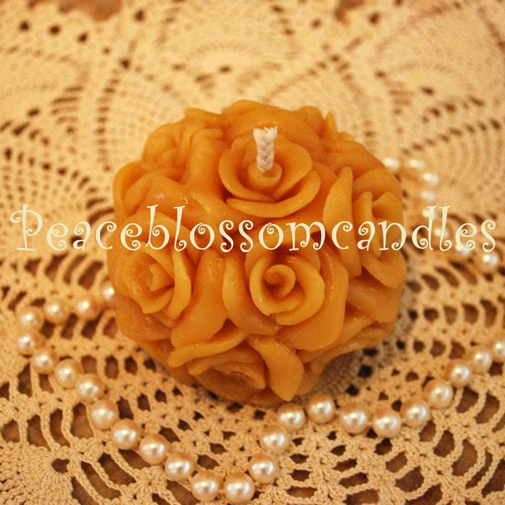 This candle measures 3″ across, and like all my candles, is made of pure Oregon beeswax and fitted with an all-cotton wick. Burn time: about 20 hours. All my spherical candles burn very well, almost like a pillar.