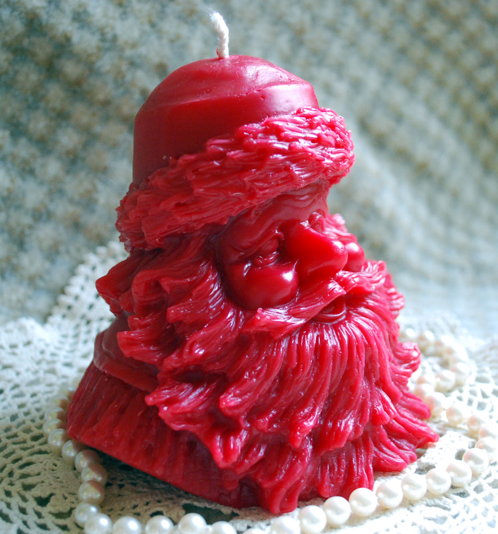 Pure Beeswax RED Santa Saint Nick Bust Head Christmas Candle
