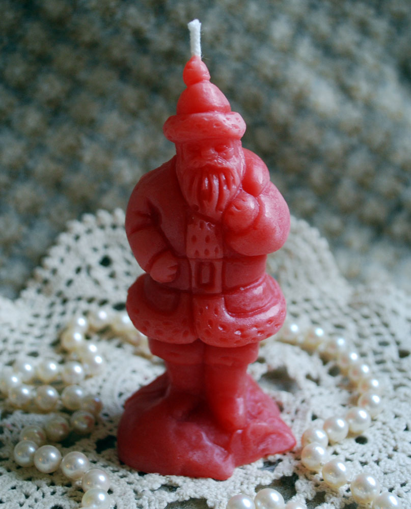 Pure Beeswax Santa Claus Saint Nick Father Christmas Candle in RED