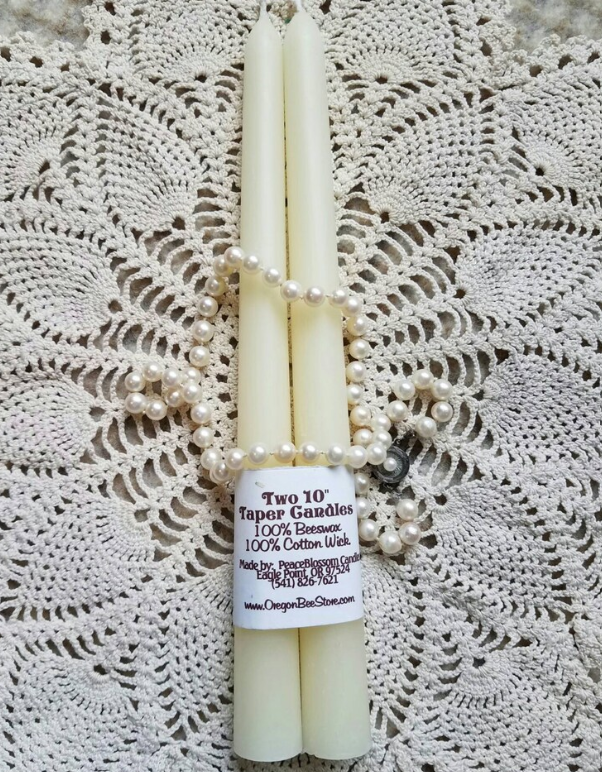 Pure Beeswax Tapers from silicone molds 10 inches tall White or Natural set 2