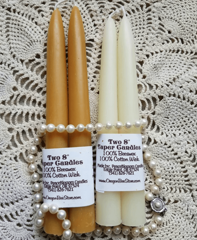 Pure Beeswax Tapers from silicone molds 8 inches tall White or Natural set 2